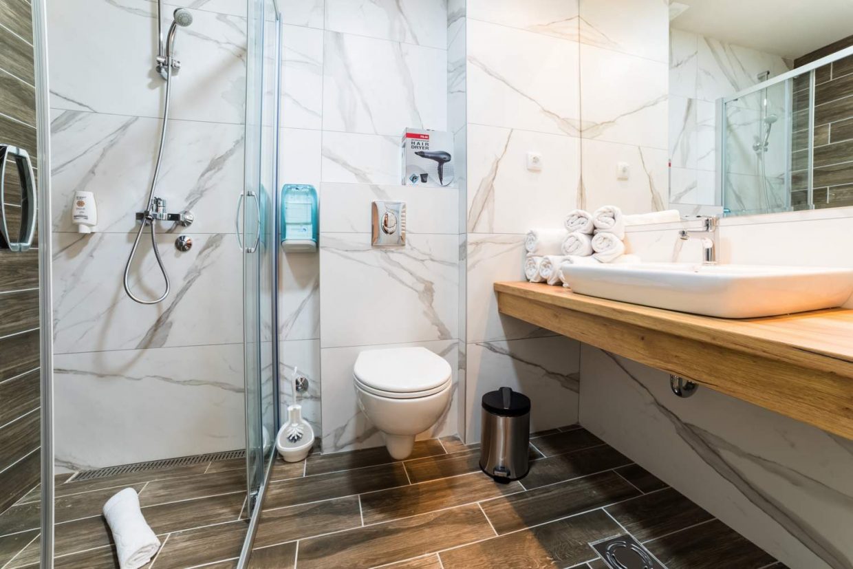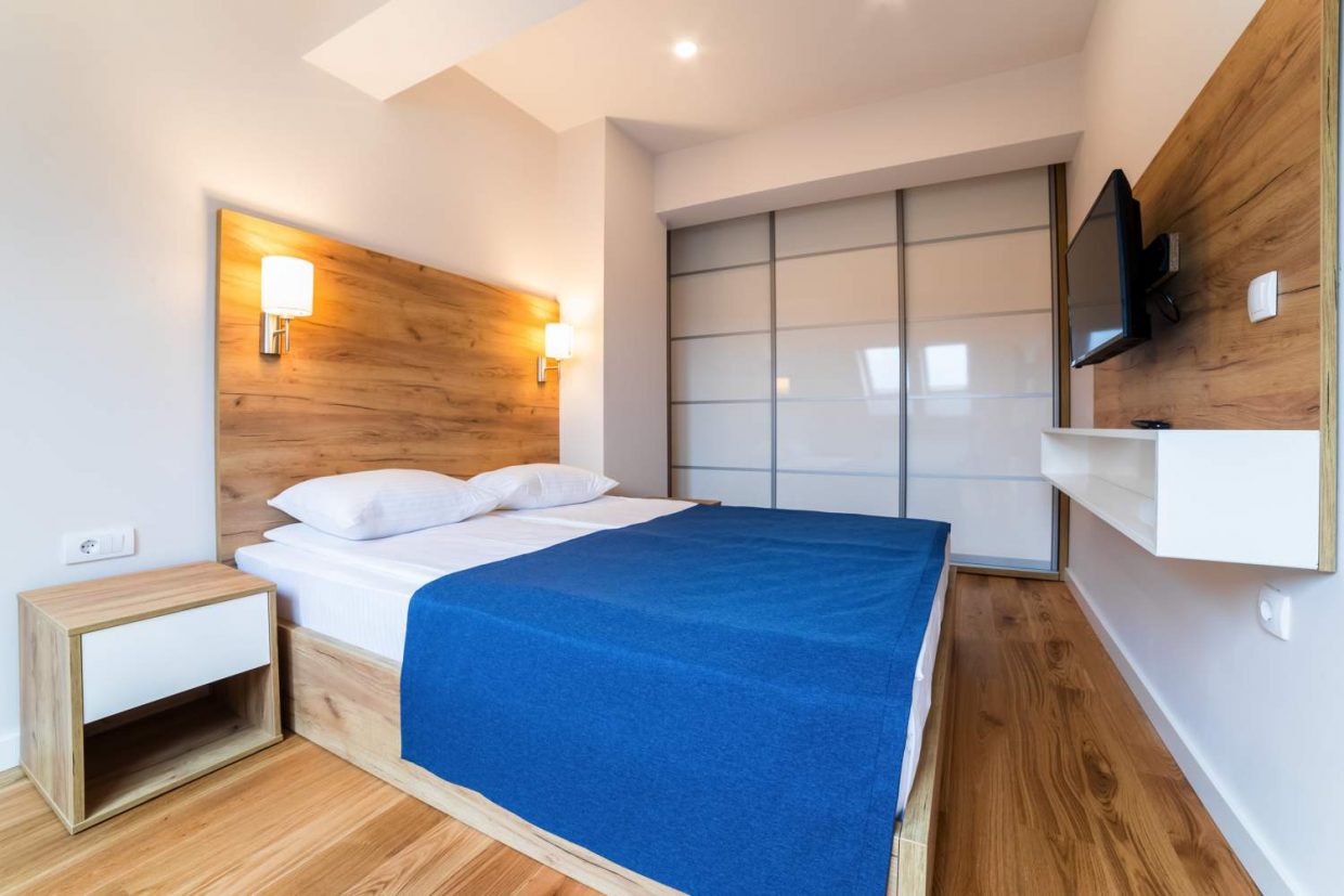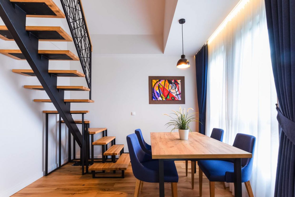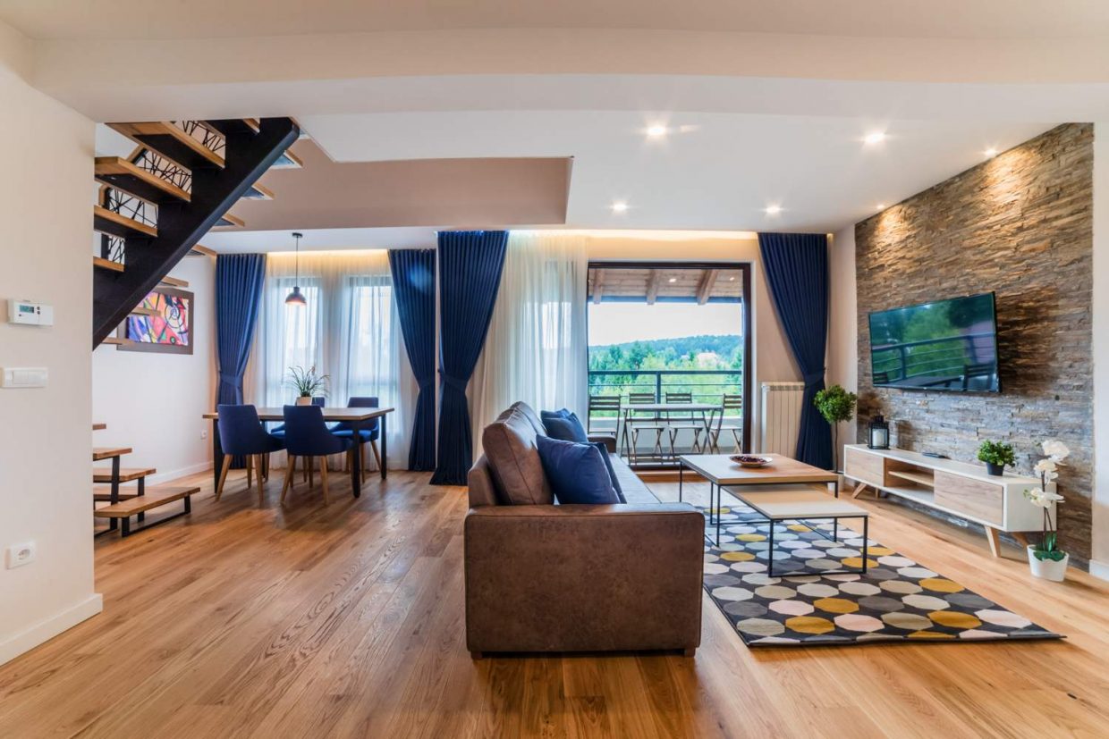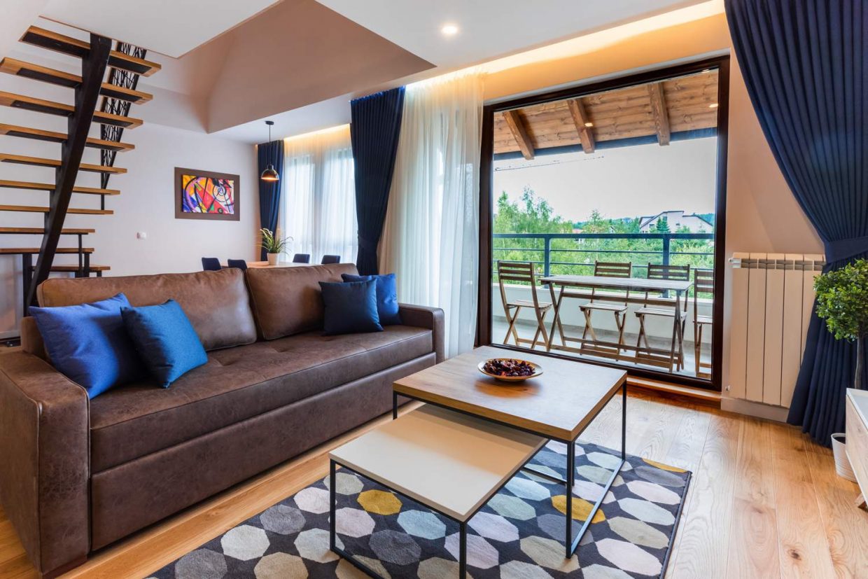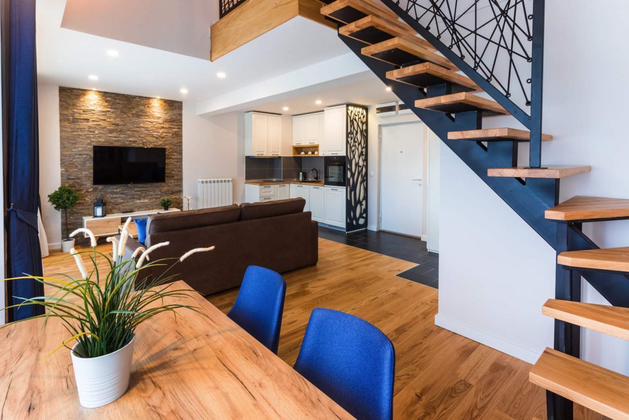 Luksuzan duplex apartman povšine 41 m²+29 m². Na prvom nivou se nalazi dnevni boravak sa kompletno opremljenom kuhinjom, I kupatilo, a na drugom nivou se nalaze 2 spavaće sobe sa francuskim ležajem. Apartman se nalazi na četvrtom spratu vile Harizma, tako da gosti pored izuzetnog komfora u apartmanu mogu uživati I u prelepom pogledu sa terase.