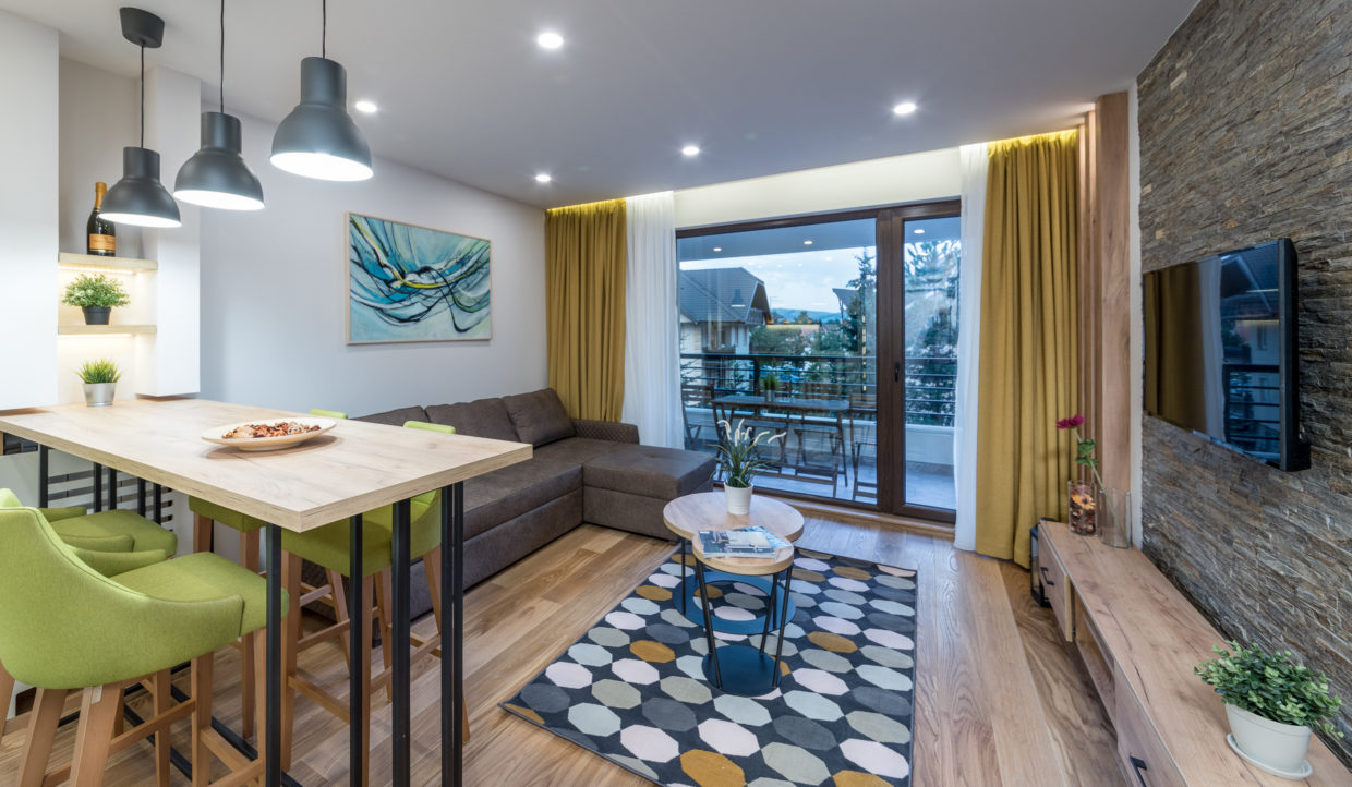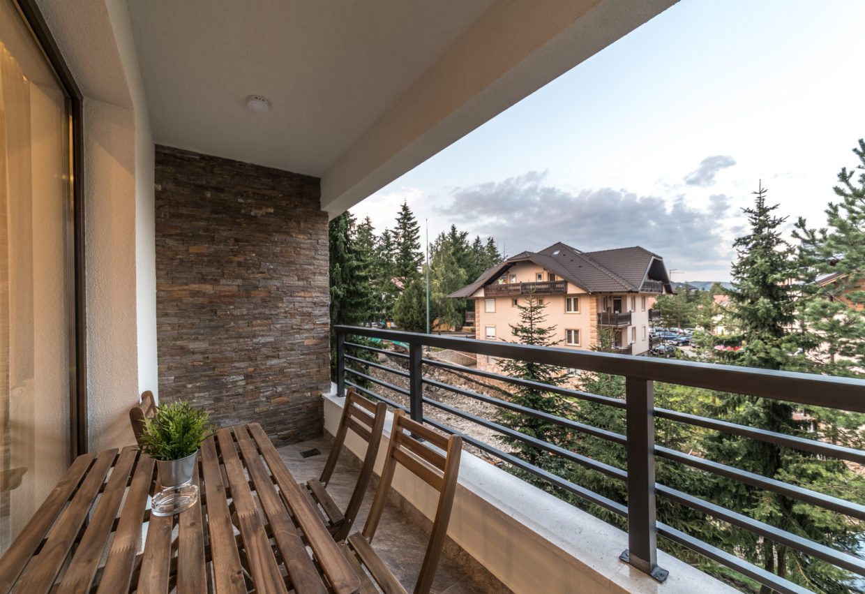 Apartman uređen u skladu sa zahtevima savremene porodice. Prostran, ukupne površine 44m2 u svom sastavu ima odvojenu spavaću sobu, kuhinju sa trpezarijom, kupatilo I terasu. Nalazi se na prvom spratu Vile Iskra.