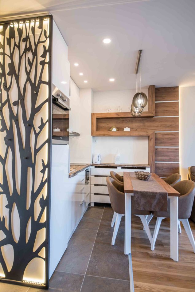 Apartman se nalazi na drugom spratu Vile Iskra I površine je 41m2. Poseduje odvojenu spavaću sobu, dnevni boravak, kuhinju sa trpezarijom, kupatilo I terasu. Svojim istovremeno funkcionalnim i modernim uređenjem, doprinosi kompletnom ugođaju koji odmor na Zlatiboru nudi.