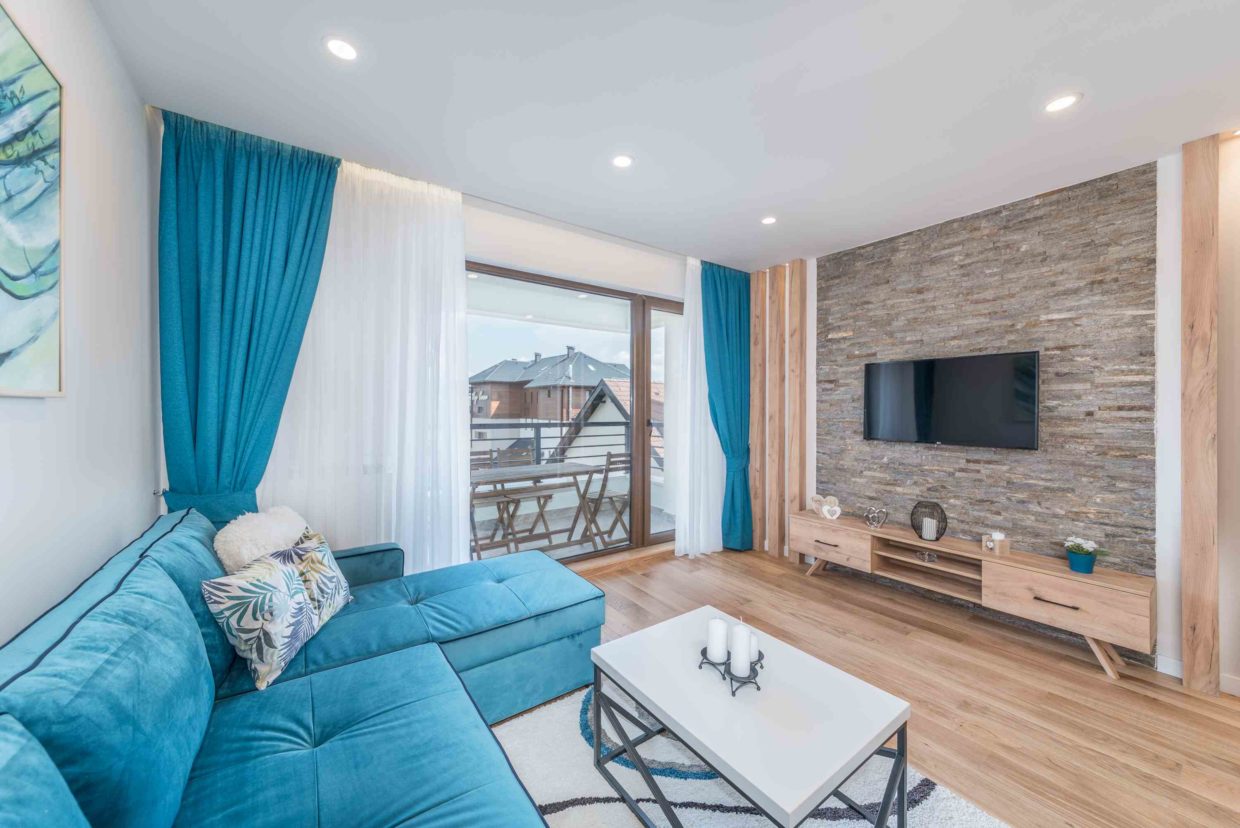Apartman je ukupne površine 44 m2. Komforan, sa jednom spavaćom sobom, dnevnim boravkom, kuhinjom sa trpezarijom, kupatilom I terasom, predstavlja idealno mesto za odmor na našoj prelepoj planini.