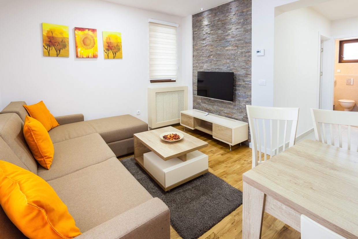 Moderan apartman sa jednom spavaćom sobom koji pruža savršen odmor gostima koji traže mir i komfor. Nalazi se na trećem spratu Vile Jela. Ukupne površine 42 kvadrata raspolaže sa moderno opremljenom kuhinjom i dnevnim boravkom, kupatilom i terasom.